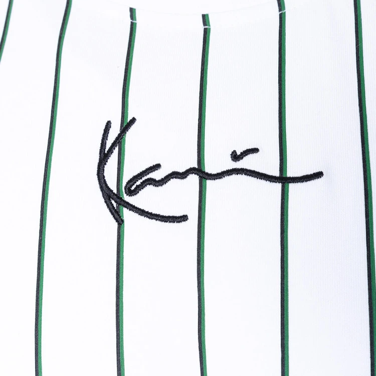 Camiseta Karl Kani blanca de manga corta. Estampado a rallas. Un básico para verano.