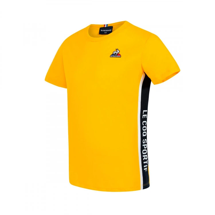 Camiseta de manga corta para niños. Jersey liso de algodón. Agradable y suave de llevar. Corte regular / clásico. Raya de punto bicolor aplicada en el lado izquierdo. Nueva insignia bordada “Logo du Coq” aplicada en el pecho izquierdo.