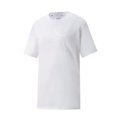 Fabulosa camiseta relajada en todos los aspectos sin ser llamativa, desde las mangas extragrandes y el ajuste relajado hasta el material de algodón suave con los bordes acanalados. Terminada con el contorno bordado de nuestro logotipo PUMA Cat clásico, esta camiseta toca todas las notas sutiles correctas.