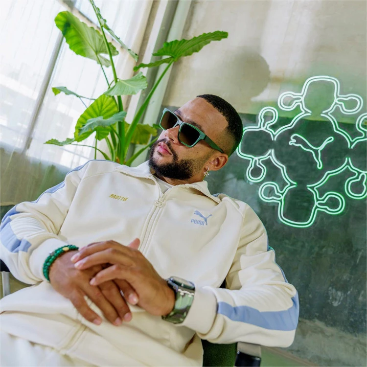 La nueva colección exclusiva de PUMA reinventa un clásico de la marca bajo la visión del icono del fútbol Memphis Depay. PUMA ha unido fuerzas con el jugador holandés y su proyecto, la marca de ropa BADTTW, con el fin de renovar colección Iconic T7. Memphis ha reequipado la chaqueta deportiva T7 con técnicas prémium, de color blanco y azul de género neutro, y ha cosido su marca BADTTW en el pecho. La parte trasera está bordada con una insignia diseñada por el mismísimo Memphis para representar su mantra: “Blind and Deaf to the World” (Ciego y sordo a las críticas).